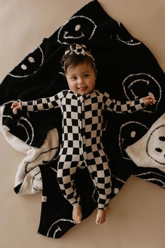 forever french Baby Plush Blanket | for Infant Toddler and Newborn | Receiving Blanket | 100% Microfiber Feather Yarn | Soft Warm Cozy for Crib Stroller & Travel | 45"x45" (Just Smile Black & Ivory) 1