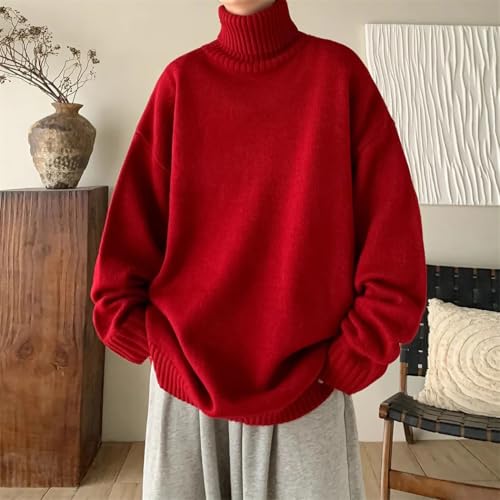 Men’s Winter High Neck Sweater Loose Fit Knit Pullover Casual Solid Color Warm Knitted Jumper Daily Wear 7
