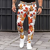 More information about Men's Trees / Leaves Dress Pants Mid Waist Vintage Casual Formal Dailywear Pocket Summer Spring Fall 3D Print Orange