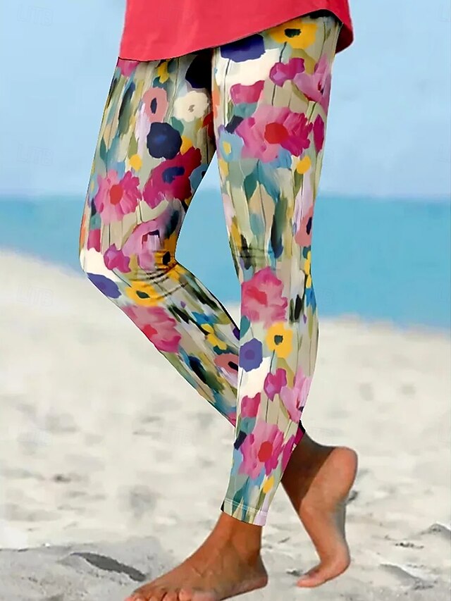 More information about Women's Leggings Vacation Vintage Ethnic Style Ankle-Length High Waist Floral Graphic 3D Print Soft Comfortable Stretchy Outdoor Home Causal Rose Pink Spring Fall Slim Fit