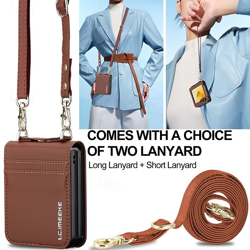 More information about Phone Case For Samsung Galaxy Z Flip 7 Z Flip 6 Z Flip 5 Z Flip 4 Z Flip 3 Back Cover with Lanyard Card Slot Shockproof Retro TPU PU Leather