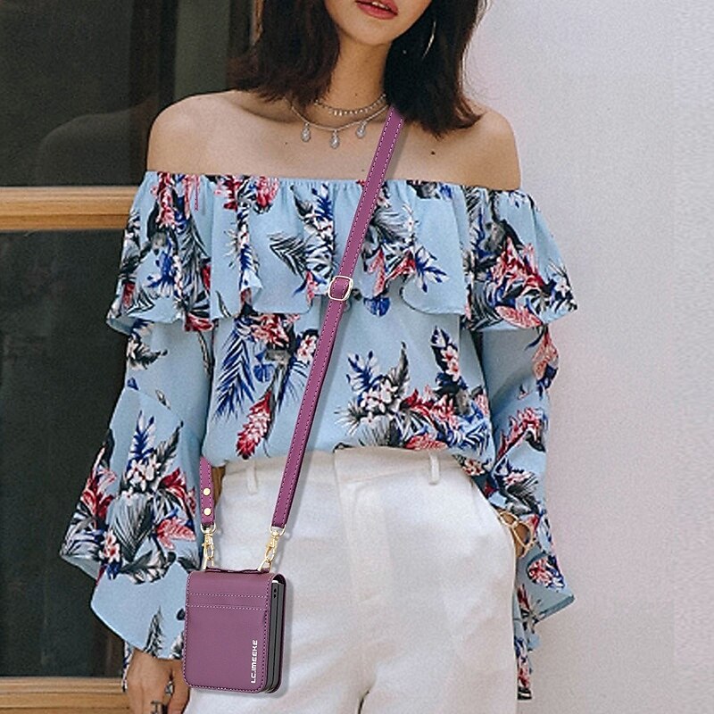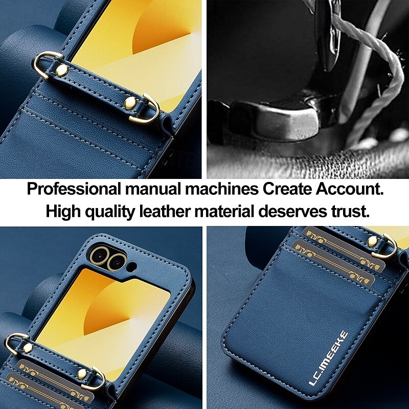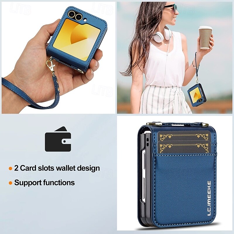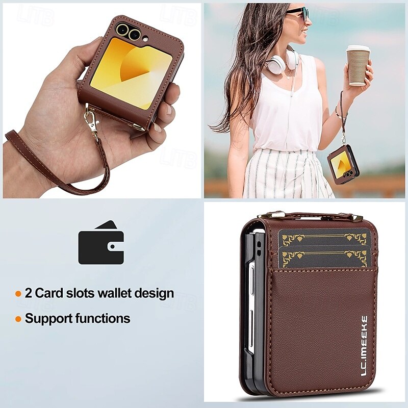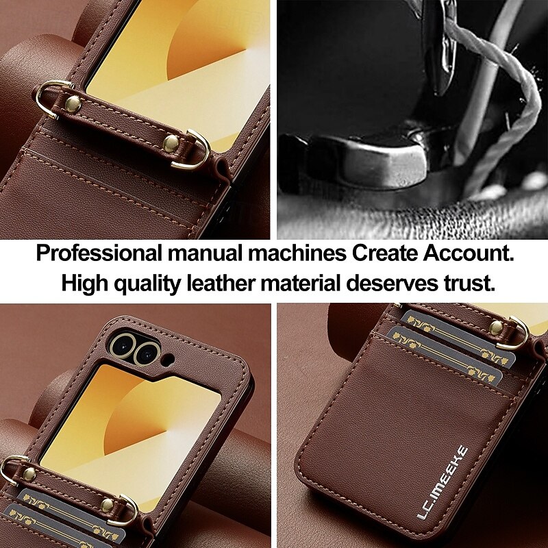 HOT ! Phone Case For Samsung Galaxy Z Flip 7 Z Flip 6 Z Flip 5 Z Flip 4 Z Flip 3 Back Cover with Lanyard Card Slot Shockproof Retro TPU PU Leather