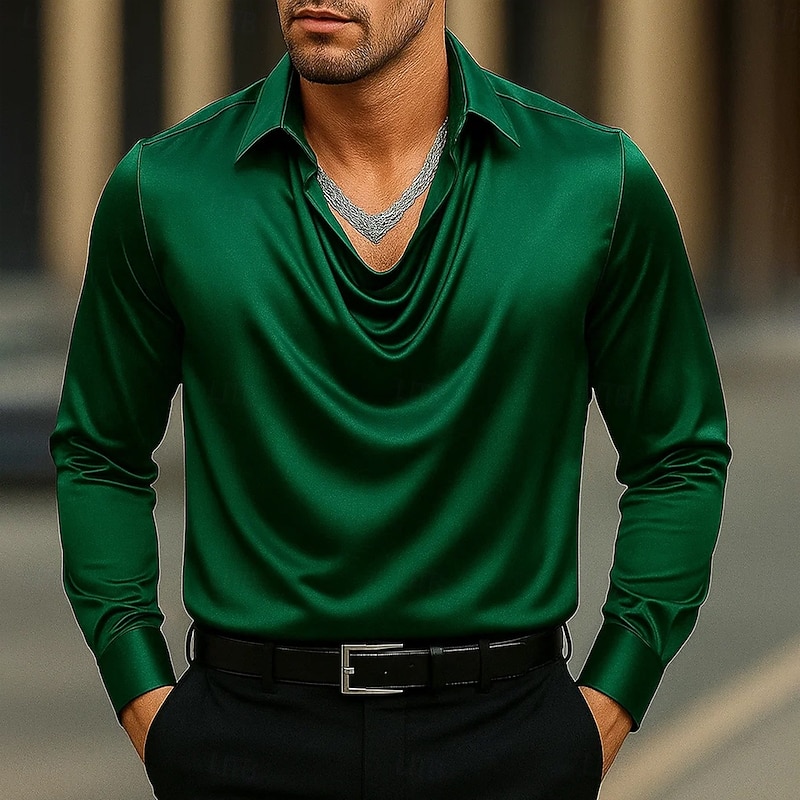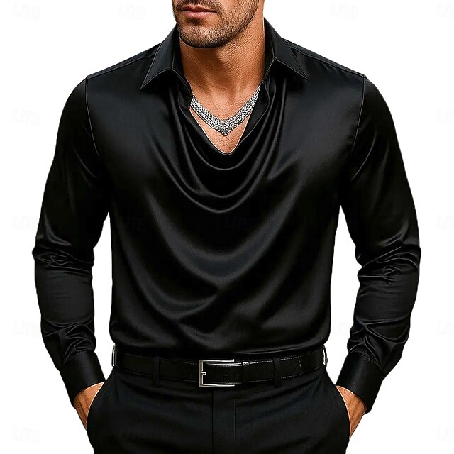 More information about Men's Shirt Silk Like Satin Shirt Casual Shirt Plain Formal Wedding Silver Black Gold Green Long Sleeve Lapel Spring & Fall All Seasons Clothing Apparel Ruched
