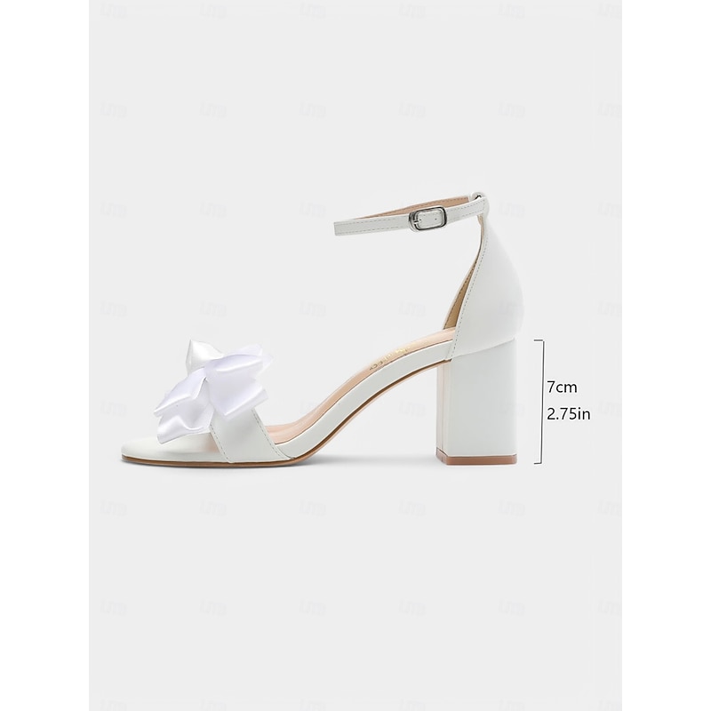 HOT ! Women's White Satin Sandals with Large Bow Detail, Block Heel for Outdoor Weddings and Special Events