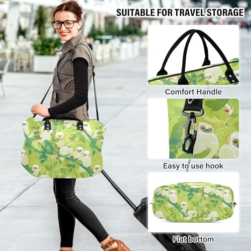 Travel Hand Bag Cartoon Sifaka Light Green Shoulder Weekender Overnight Bag with Toiletry Bag for Workout 2 Pcs Set bolso viajero para mujer 5