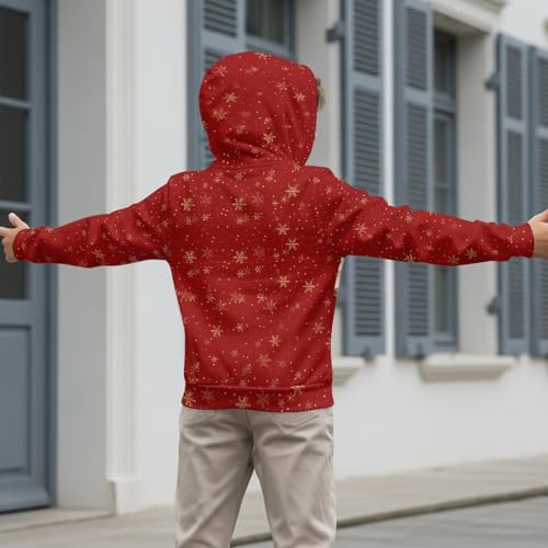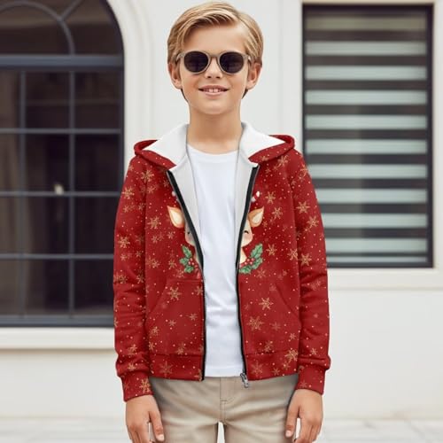 More information about Kids Red Zip Up Hoodie Hoodies For Boys 6-16 Years Old Trendy Christmas Sweatshirt With Kangaroo Pocket