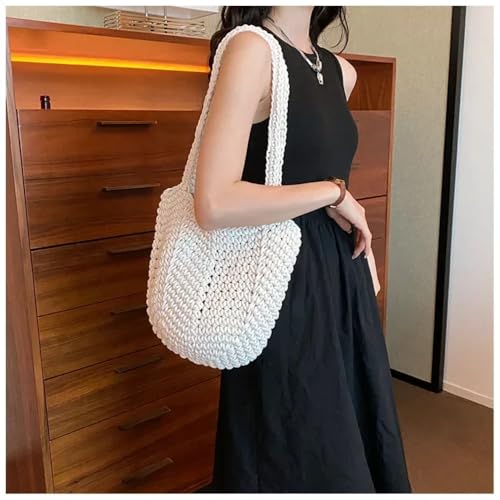 HOT ! Retro Knitted Shopping Shoulder Bag for Women, Handmade Woven Tote Bag Girls Large Capacity Cotton Rope Handbags Summer Ladies Travel Beach Bags