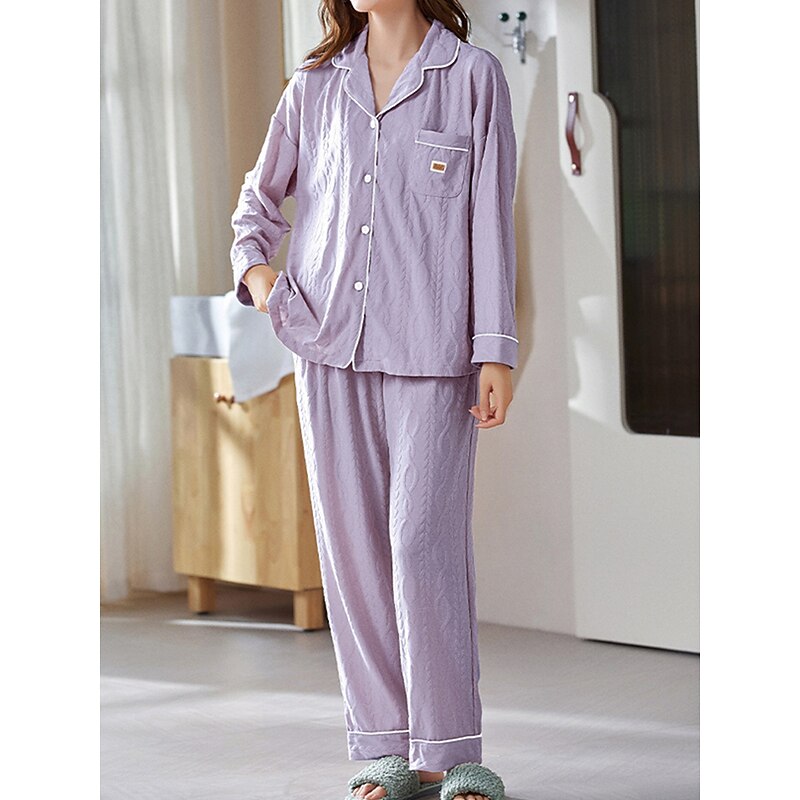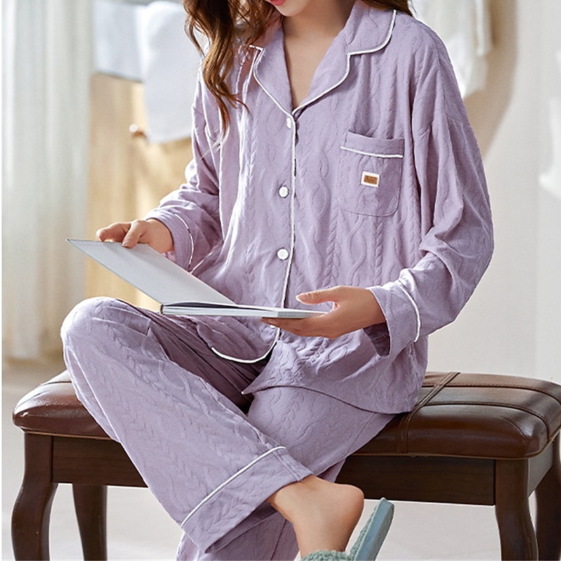 More information about Women's Pajamas Sets Letter Casual Comfort Home Daily Bed Cotton Breathable Lapel Long Sleeve Shirt Pant Button Pocket Fall Winter Home Outfits