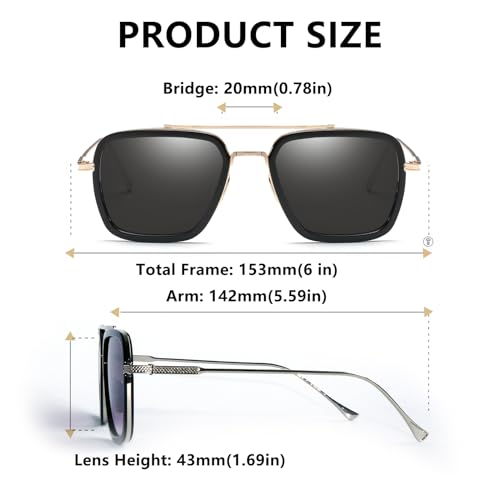 • 😎【Tony Stark Sunglasses for Men】► Tony Stark gave Peter Parker sunglasses. Let us miss Mr. Stark like Peter Parker. This Square Tony Stark Sunglasses are Eco-Friendly Material, No Pb, Mercury included, Pass Heavy metal test. Please be assured used that all accessories and materials do not contain lead, bisphenol A and other harmful substances.