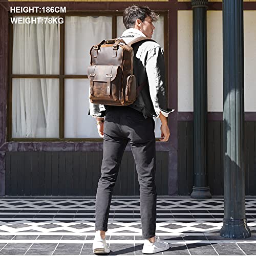 • 【Multipurpose】This retro leather backpack is best for outdoor activities, travel, hiking, camping. Large storage can accommodate lots of stuffs like college supplies, travel accessories, clothes, notebook, tablet, cellphone, shaver, wallet, glasses case, power bank and other items