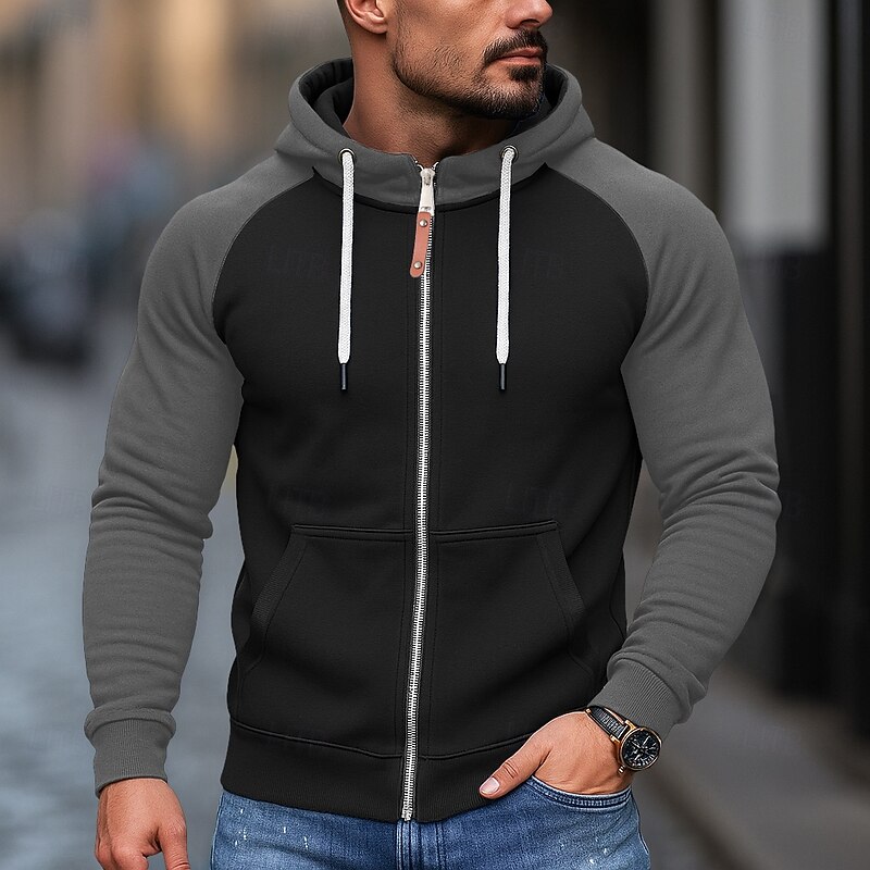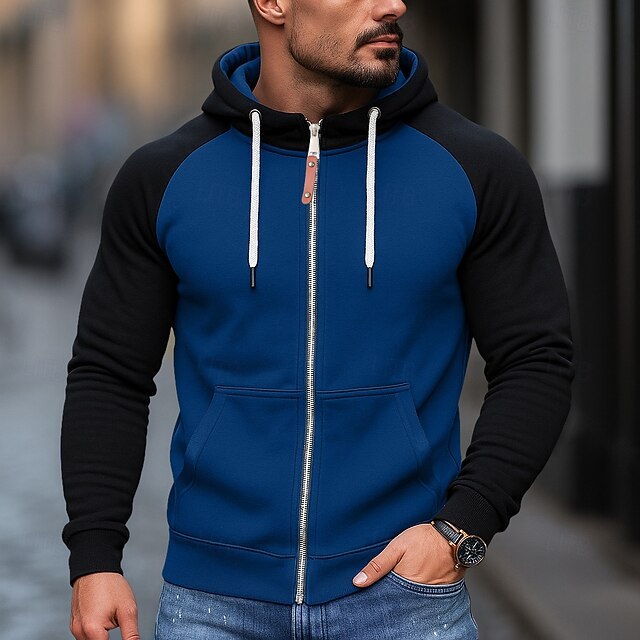 More information about Men's Hoodie Full Zip Hoodie Fleece Hoodie Fleece lined Hoodie Black Burgundy Blue Light Grey Dark Gray Hooded Plain Patchwork Color Block Sports & Outdoor Casual Daily Streetwear Cool Sportswear