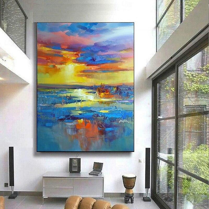 More information about Handmate Oil PaintingCanvasWall Art DecorationAbstract Knife PaintingLandscape Yellowfor Home Decor Rolled Frameless Unstretched Painting