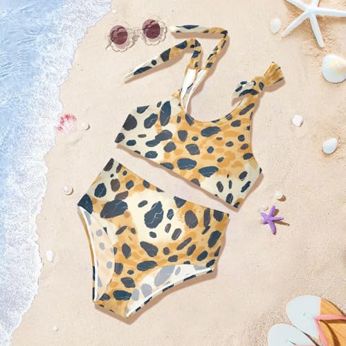 Abstract Leopard Cheetah Skin Shapes Girls' Two Piece Kids Bikini Set Quick-Dry Swimsuit Swimming Suits Adjustable Strap 5