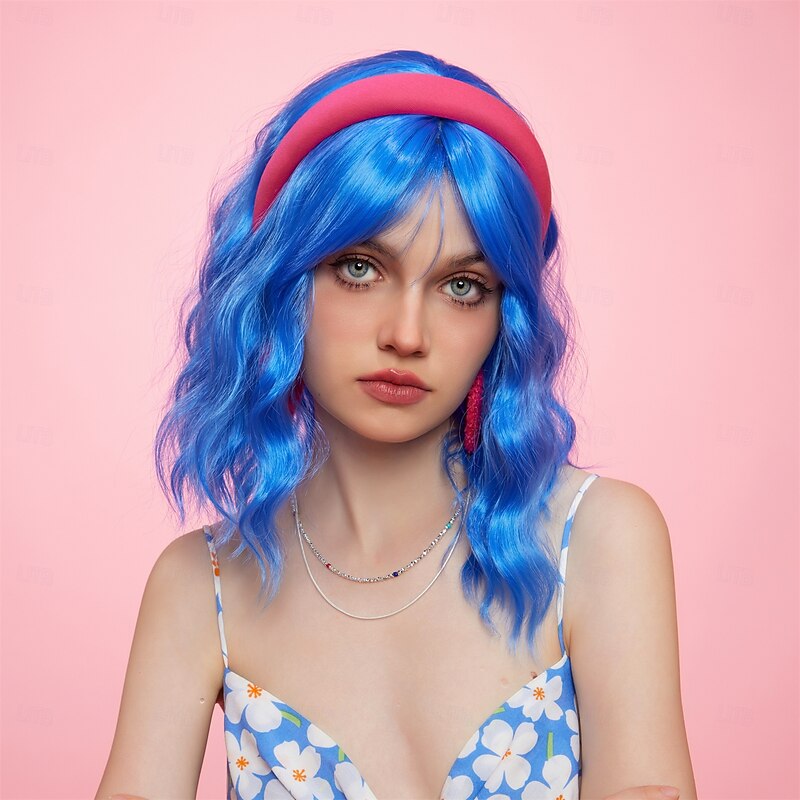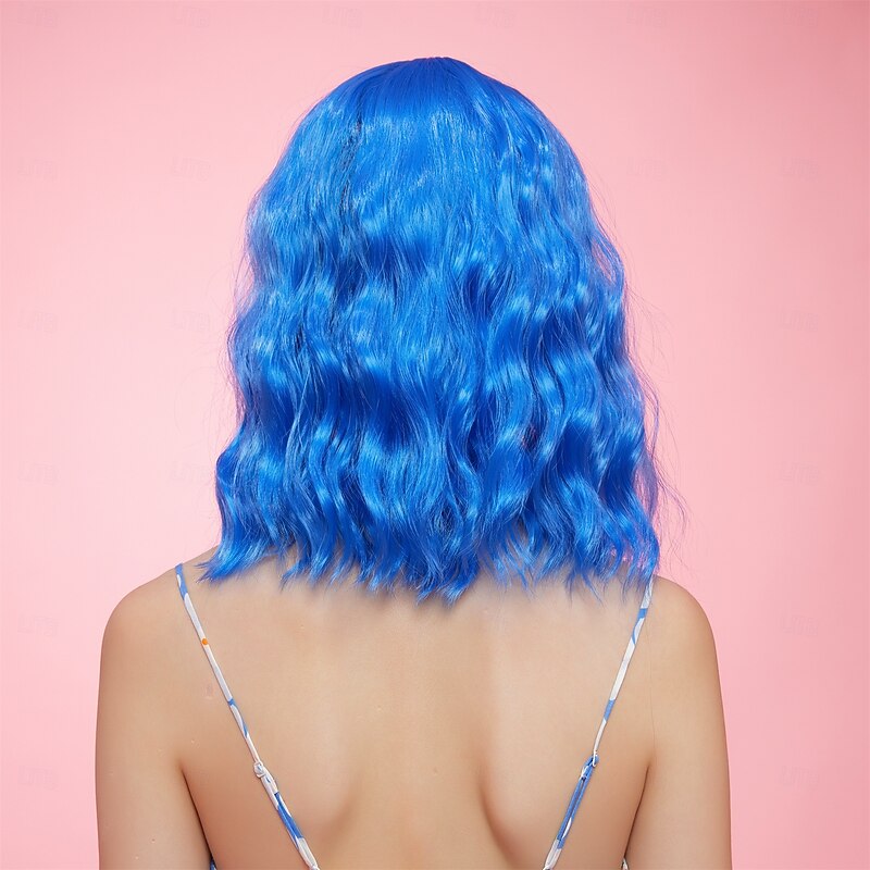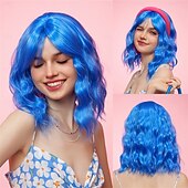 More information about Synthetic Wig Uniforms Career Costumes Princess Curly Wavy Middle Part Layered Haircut Machine Made Wig 14 inch Royal Blue Synthetic Hair Women's Cosplay Party Fashion Blue