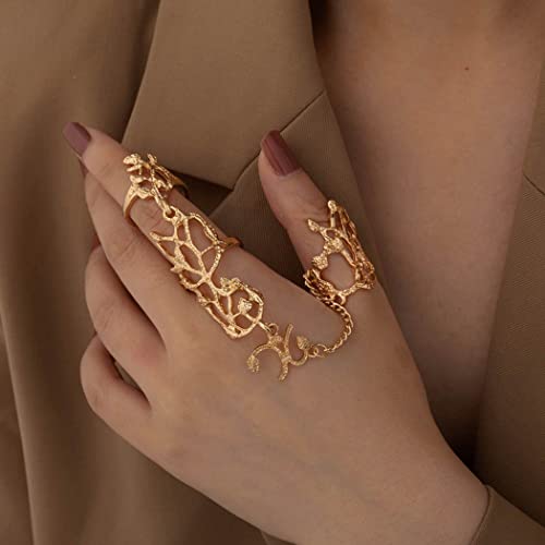Yalice Charm Leaf Full Finger Ring Bracelets Dainty Knuckle Open Ring Harness Hand Chains Adjustable Statement Rings Jewelry for Women Gift 3