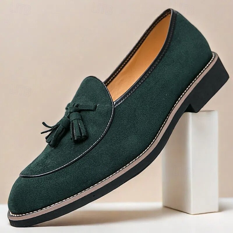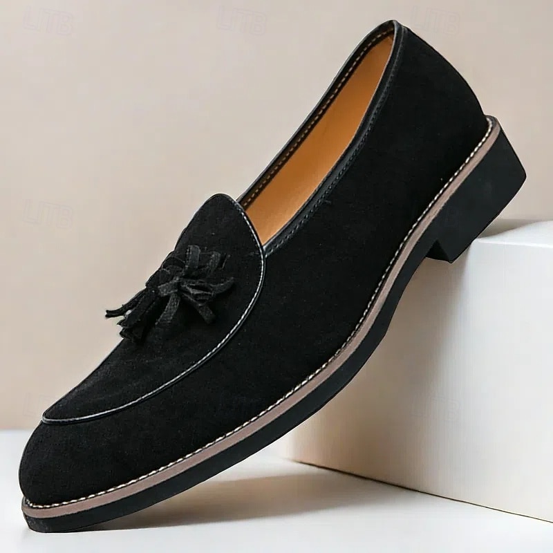 Men's Suede Loafers with Tassel Detail – Stylish Casual Slip-On Shoes with White Piping, Comfortable Footwear for Everyday Wear and Semi-Formal Events 24