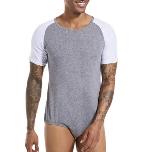 Men Short Sleeve Romper Pajama Bodysuit One Piece Crotch Shirt Tops 3