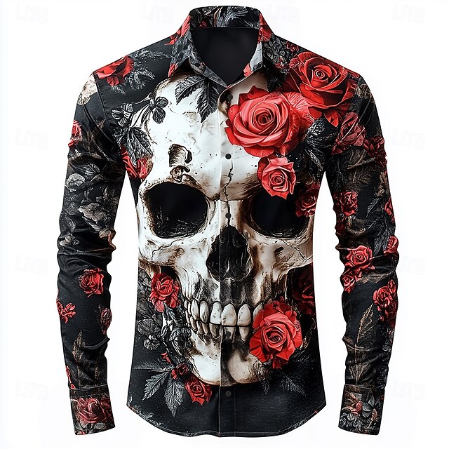 HOT ! Men's Skull Romantic Halloween Costumes Shirt Button Up Shirt Long Sleeve Gothic Style Holiday Streetwear Summer Spring Turndown 3D Print Collared Shirts Black White