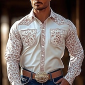 More information about Men's Floral Print Flowers Shirt Western Shirt Cowboy Shirt Long Sleeve Vintage Retro Outdoor Casual WorkWear Spring Fall Turndown Front Two Pockets Linen Like Shirt Button Up Shirts White Pink