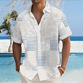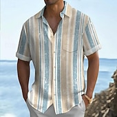 More information about Men's Striped Geometric Pattern Button Up Shirt Printed Shirts Short Sleeve Hawaiian Resort Outdoor Business / Ceremony / Wedding Summer Turndown Print Button-Down White Pink Blue