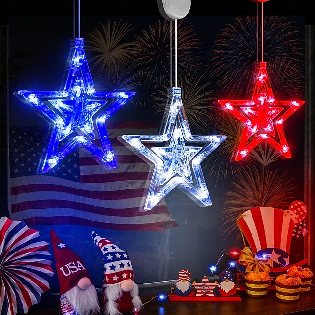 $16.49 - 3 Pcs July 4th Patriotic Hanging Lights Independence Day Red, White, Blue Pentagram Suction Cup Window Decorative Lights Party Patriotic Atmosphere Decorative Lights AAA Battery Box 2025. Shop for cheap Decorative Lights online? Buy at lightinthebox.com on sale today!