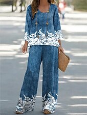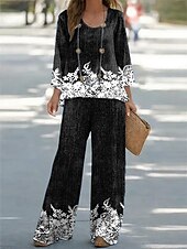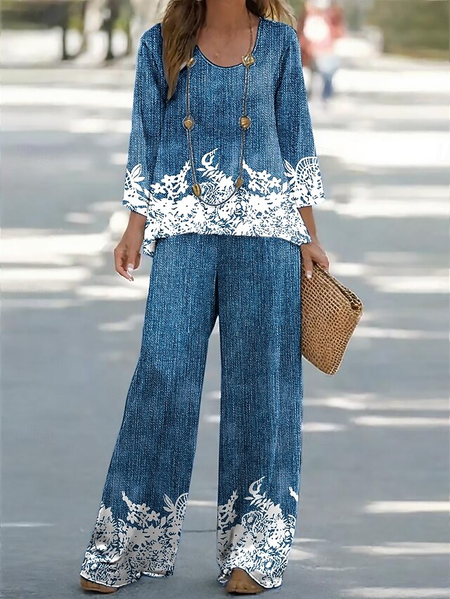 sought-after ! Women's Shirt Blouse 3/4 Length Sleeve U Neck Ombre Floral Graphic Print Outdoor Vacation Casual Black Ink Blue Gray Summer Loose Fit