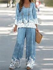 More information about Women's Shirt Blouse 3/4 Length Sleeve U Neck Ombre Floral Graphic Print Outdoor Vacation Casual Black Ink Blue Gray Summer Loose Fit