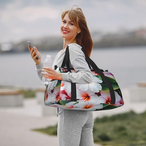 HOT ! Hawaii Flower Print Travel Duffle Bag - Foldable Personal Item Travel Bag for Women & Men,Carry-On Convertible Crossbody Tote Bags with Adjustable Shoulder Strap & Pockets 13x10.2x19.7 in