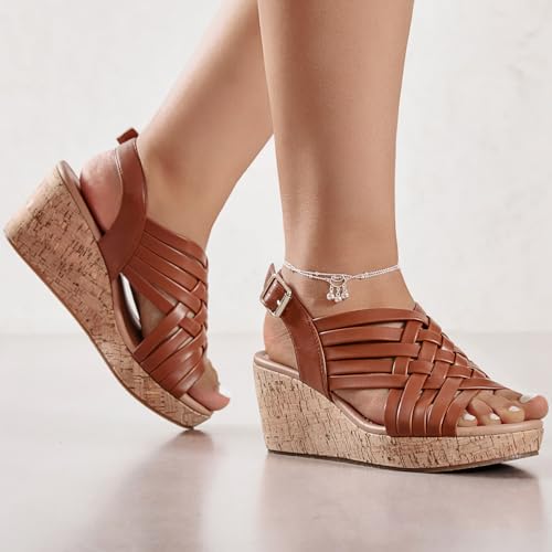 Luoika Women's Wide Width Wedge Sandals, Platform Wedge Pump Heel Ankle Strap Open Toe Women's Sandals Concise Casual Summer Shoes. 6