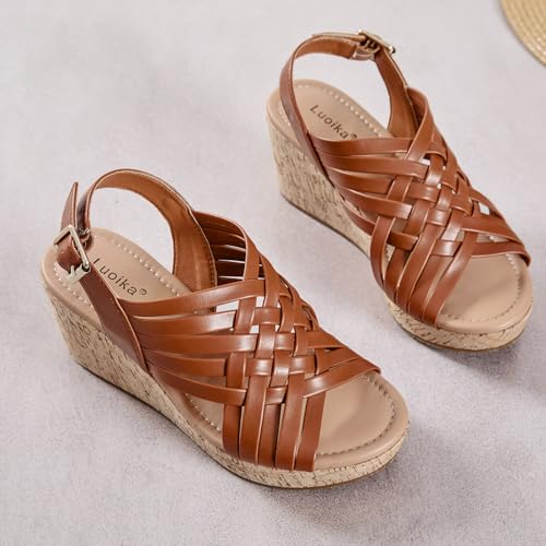 Luoika Women's Wide Width Wedge Sandals, Platform Wedge Pump Heel Ankle Strap Open Toe Women's Sandals Concise Casual Summer Shoes. 1