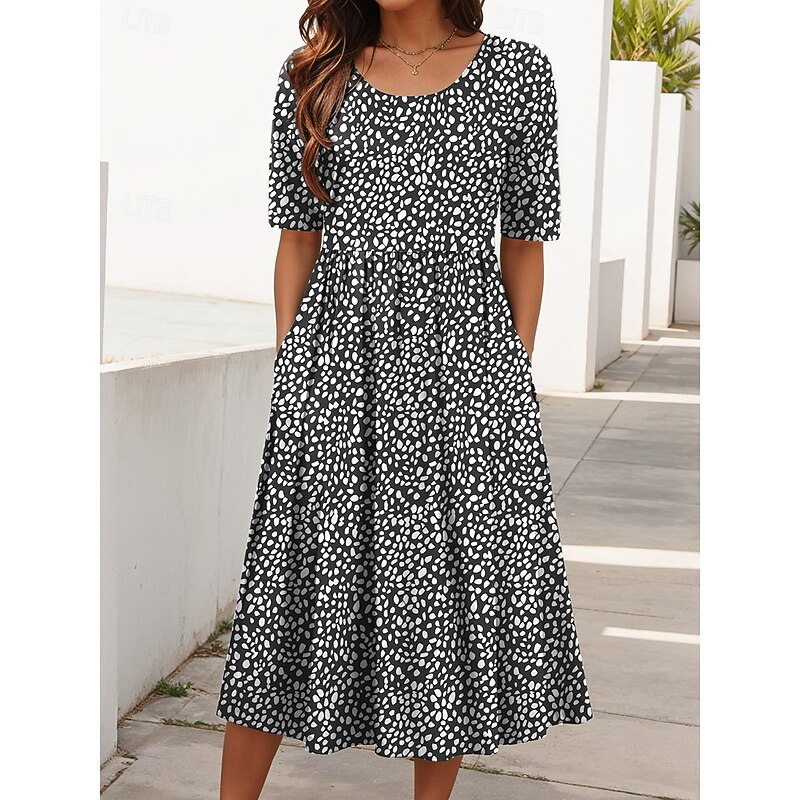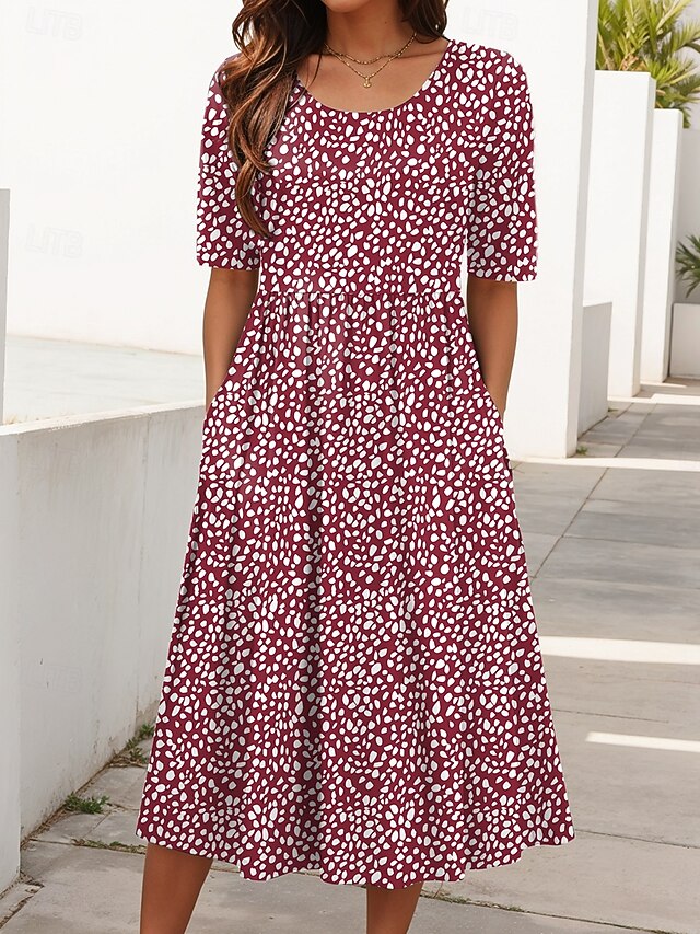 More information about Women's Midi Dress Summer Dress Pleated Dress Vacation Casual Holiday Regular Fit Graphic Geometric Half Sleeve Crew Neck Black Pink Burgundy Purple Summer Spring