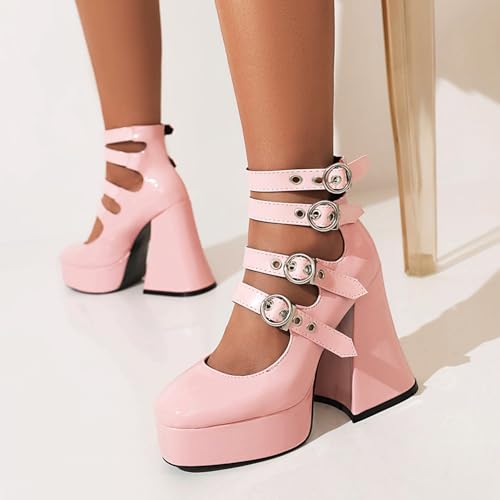 Gothic Shoes for Women Platform Mary Janes Ankle Strap Block High Heel Pumps Goth Heels for Women Y2K Shoes 2