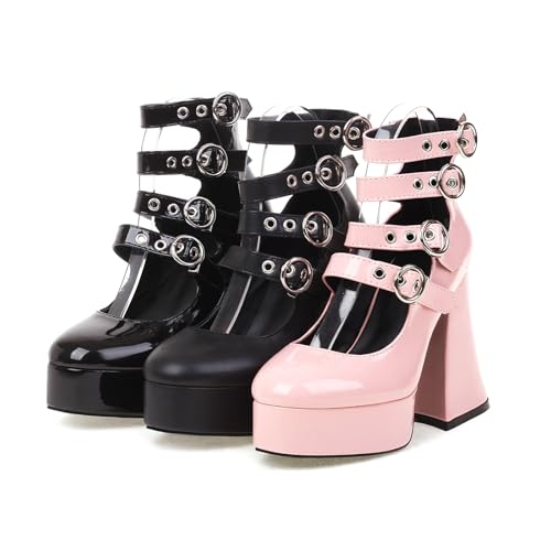 Gothic Shoes for Women Platform Mary Janes Ankle Strap Block High Heel Pumps Goth Heels for Women Y2K Shoes 6
