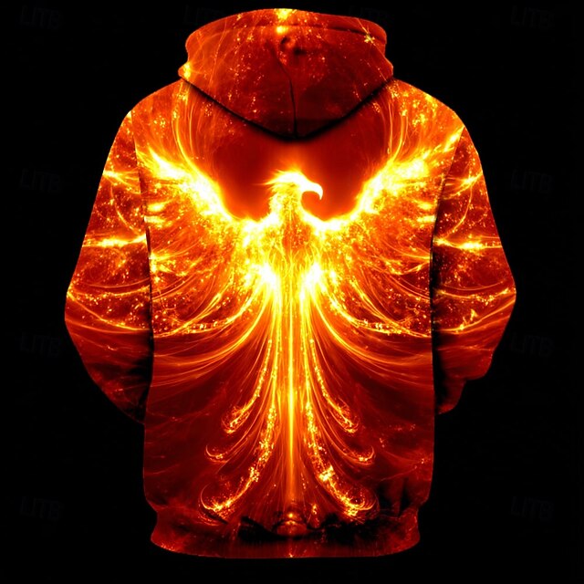 More information about Men's 3D Flame Phoenix Hoodie Sweatshirt Cool Party Crew Neck Club Streetwear Yellow Orange Drawstring Fall Winter Designer