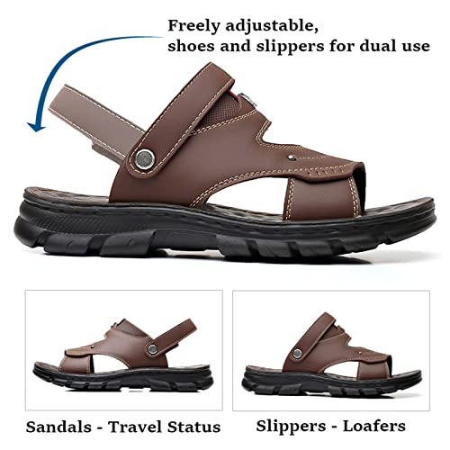 Men's Athletic Hiking Walking Sandals Non-Slip Water Resistant Lightweight Comfortable Beach Shoes,Men's Leather Sport Sandals, Breathable Waterproof Outdoor Athletic (Color : Brown, Size : 9.5) 5