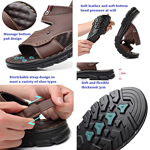 HOT ! Men's Athletic Hiking Walking Sandals Non-Slip Water Resistant Lightweight Comfortable Beach Shoes,Men's Leather Sport Sandals, Breathable Waterproof Outdoor Athletic (Color : Brown, Size : 9.5)