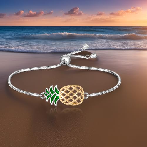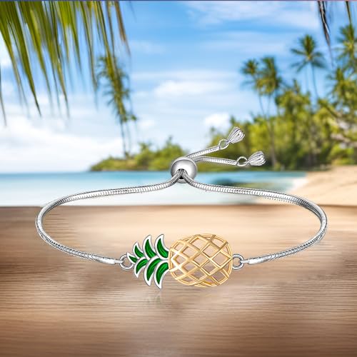 HOT ! Pineapple Bracelet for Women Sterling Silver Pineapple Bracelets Upside Down Yellow Pineapples Jewelry Summer Valentines Gifts