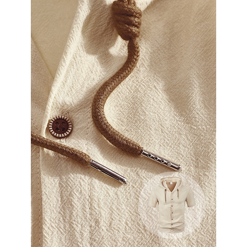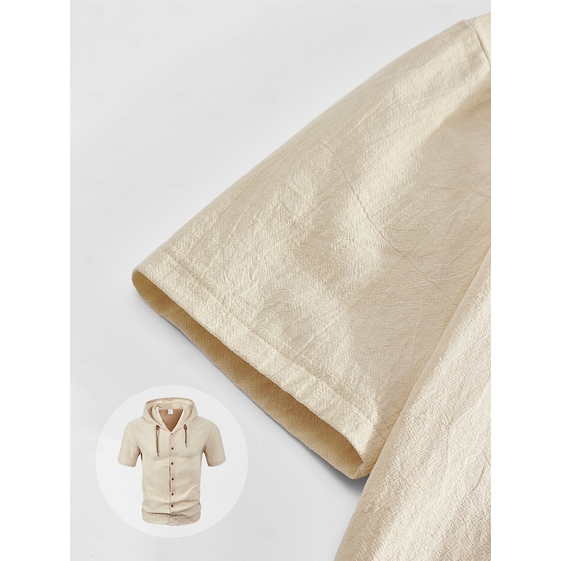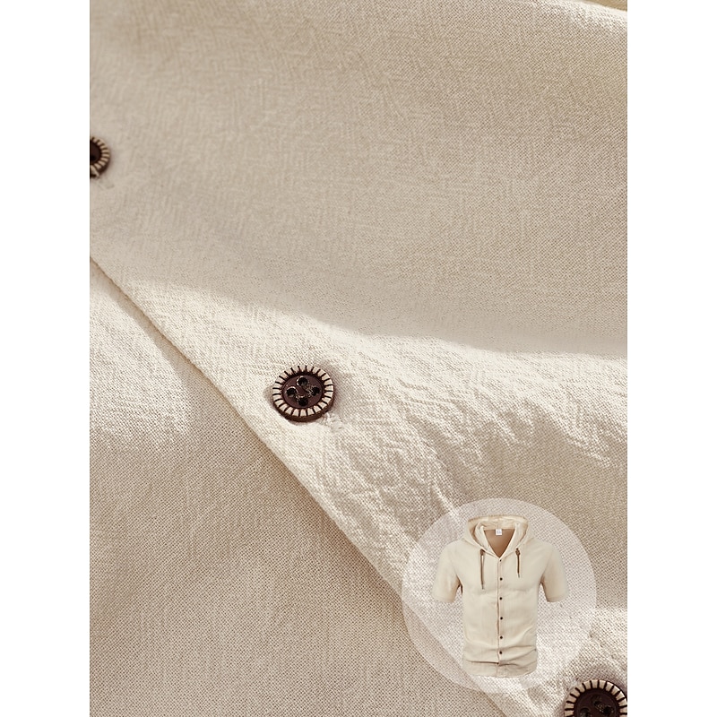 More information about Men's Button Up Shirt Hooded Shirt Black White khaki Gray Light Blue Short Sleeve Solid / Plain Color Hooded Vacation Casual Hooded Clothing Apparel Polyester Fashion
