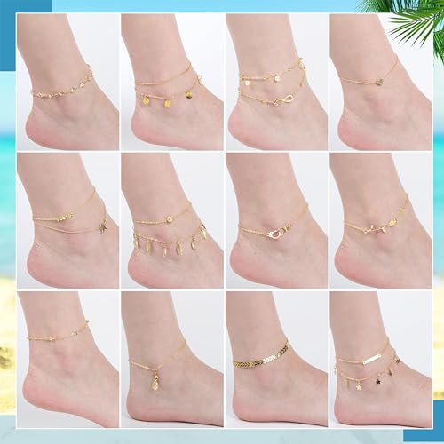 • Package List: you will get 16 pieces of anklets for women, waterproof, gold, they have wide styles, such as layered chains, leaves, hearts, stars, etc., you can change them every day, or you can stack them and match them