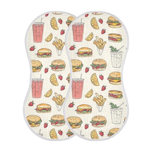 vvfelixl Sketchy Hamburger Juice Burp Cloths for Baby Boy Girls Baby Washcloths Burp Rags 1 Pack 2