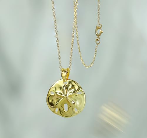 HOT ! Hoops & Loops 925 Sterling Silver Beach Sand Dollar Pendant Necklace for Women, Men | Silver, Yellow Gold, Rose Gold