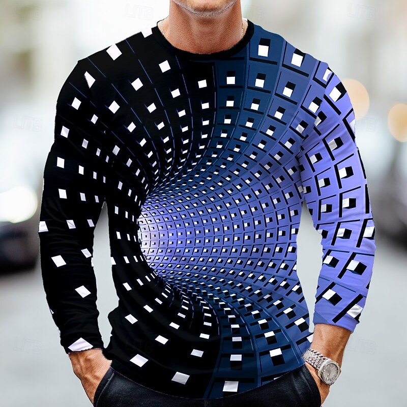 More information about Men's Optical Illusion 3D T Shirt Long Sleeve T shirt 3D Print Crew Neck Shirt Fashion Exaggerated Street Daily Black Blue Green Summer Spring Fall Clothing Apparel S M L XL XXL XXXL