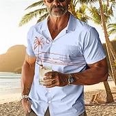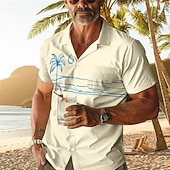 More information about Men's Palm Tree Tropical Plants Shirt Summer Hawaiian Shirt Aloha Shirt Short Sleeve Shirt Cuban Collar Vacation Hawaiian Resort Style Outdoor Vacation Hawaiian White Blue Apricot S M L