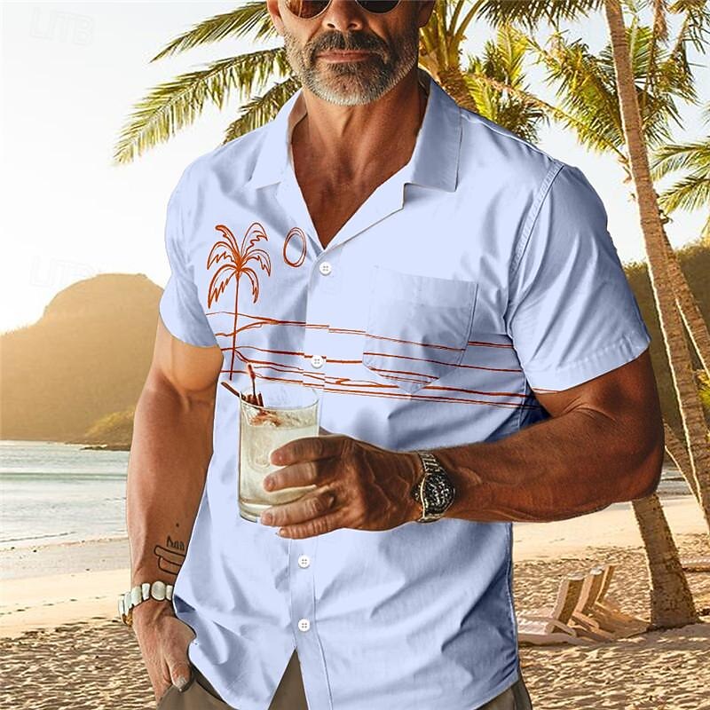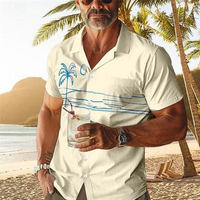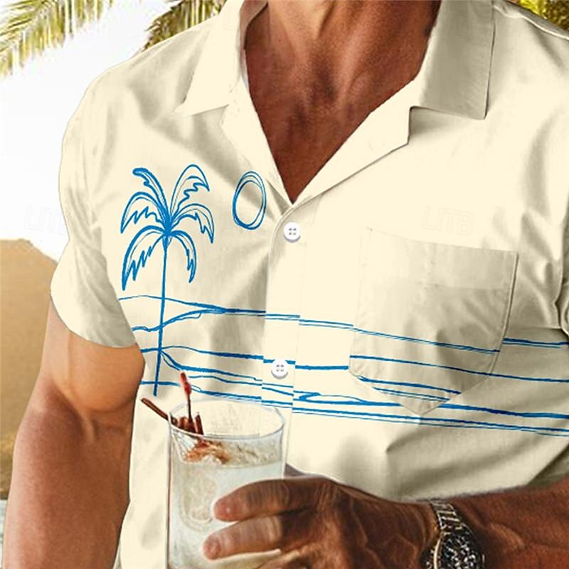 Men's Palm Tree Tropical Plants Shirt Summer Hawaiian Shirt Aloha Shirt Short Sleeve Shirt Cuban Collar Vacation Hawaiian Resort Style Outdoor Vacation Hawaiian White Blue Apricot S M L