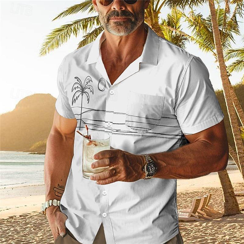 : The shirt features a classic Cuban collar and a button-up front, complemented by a vibrant 3D palm tree and tropical plant print for a true island vibe. The front pocket adds a touch of functionality, maintaining the shirt's effortlessly stylish look.