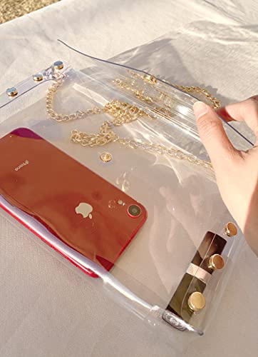 • 【Stylish Design】 This clear bag purse features a trendy transparent design with a golden chain strap and metal rivet decorations, making it a perfect accessory to elevate any outfit. Whether for a night out or daily use, it adds a touch of chic sophistication.