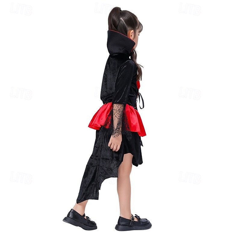More information about Kids Girls' Dress Color Block halloween custome Long Sleeve Performance Party Patchwork Gothic Costume Polyester Knee-length Casual Dress Summer Spring 4 years+ Red