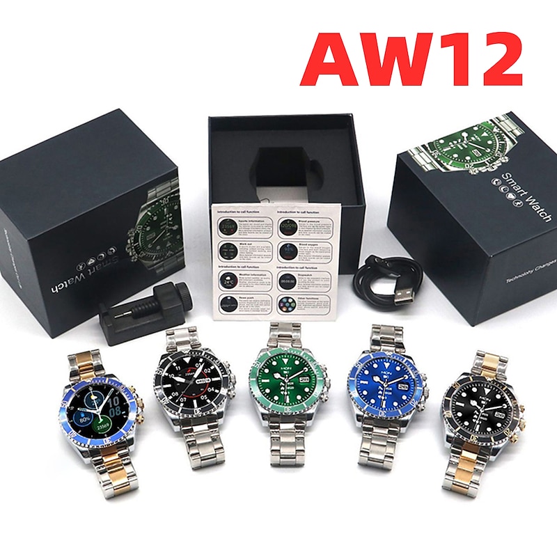 AW12/AW13 Pro Smart Watch with 1.28 Screen, Fitness Tracker, Call Monitor, Media Control, IP67 Waterproof for Android iOS 10