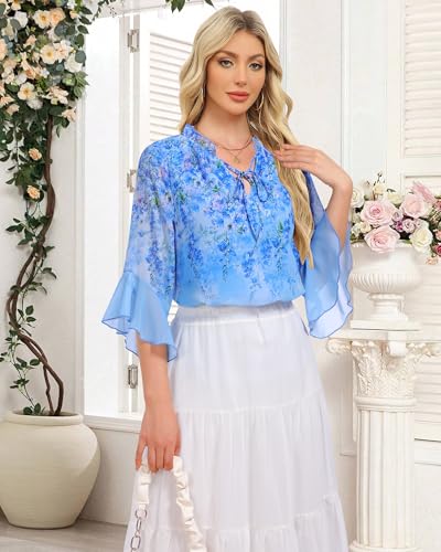 • Flattering Ruffle 3/4 Sleeve: Designed with flowy ruffle 3/4 sleeve, these chiffon blouses gracefully cover the arms and flatter different body shapes. The flowy ruffle adds a feminine and romantic touch while creating dimension and movement. Perfect sleeve length for work, business casual, office wear, parties, or casual outings, keeping you cool and elegant in spring, summer, and fall