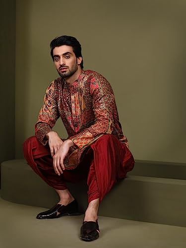 More information about Mens Kurta – Printed Cotton Blend Tunic with Mandarin Collar, Regular Fit – Indian Wedding Outfit for Men – Festive Wear for Diwali, Eid & Celebrations Maroon